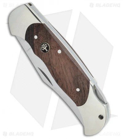 For more than a century, Boker has been crafting hunting and outdoor knives, the Optima with Walnut wood scales is an extension of that heritage. A 4034 stainless steel clip point blade features a detailed point and generous belly. Polished nickel silver bolsters and attractive Walnut wood scales make an elegant knife. The contoured handle with sculpted finger grooves make for a comfortable but sturdy grip. With a traditional lock back design, you can rely on years of use from this knife. The set includes the original clip point blade and a gut hook blade.