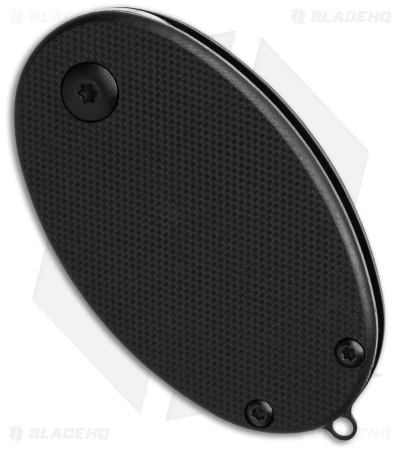 - Textured black G-10 handle with a magnet to hold the scales in place.