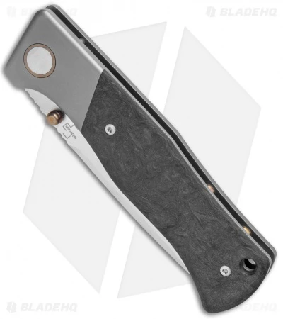 The Boker Plus Collection 2021 knife is an eye-catching piece for real knife collectors. Designed by Todd Rexford of Rexford Knives, it features a Bohler M390 super steel blade, a precision-milled titanium frame and bolster, and a wild carbon fiber handle scale. The blade rides on a bearing system for maximum smoothness. Additional touches include a bronze-anodized thumb stud, pivot collar, and backspacer. This is an extremely limited model with only 500 pieces worldwide. Made in the beautiful country of Italy, it comes with a certificate of authenticity and a nylon protective pouch.