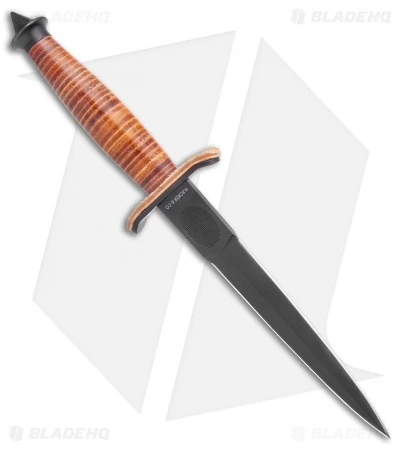 An important piece of equipment of the Devil’s Brigade was the specially designed V-42 combat knife, which was also part of the intensive close combat training. The handle of compressed leather discs ends in a pointed impact cap. A thick leather padding underneath the slightly curved pommel offered protection from injury. The double-edged blade of the dagger features a corrugated thumb rest for a secure grip. To this day, the crest of the Special Forces of the U.S. Army adorns this legendary dagger. We not only deliver this exclusive collector’s item with its classic leather sheath, but also with a replica of the cloth insignia of the unit, which is the red spearhead, and with a reproduction of the original German sticker with the words “The worst is yet to come!”, which was stuck behind enemy lines in order to demoralize the enemy. A premium collector’s ensemble, especially ideal for aficionados of military history!